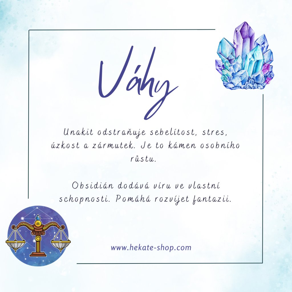 Unakit odstraňuje sebelítost, stres, úzkost a zármutek. Je to kámen osobního růstu. Obsidián dodává víru ve vlastní schopnosti. Pomáhá rozvíjet fantazii.