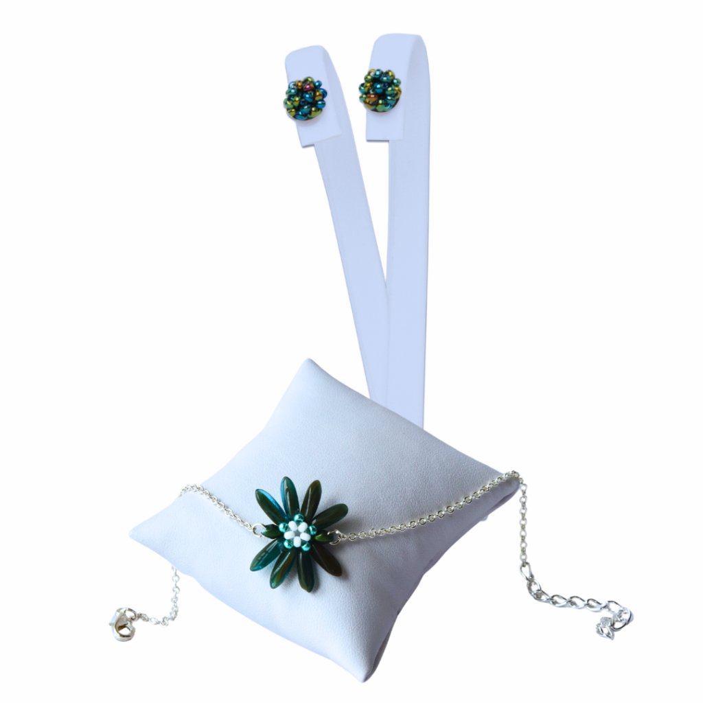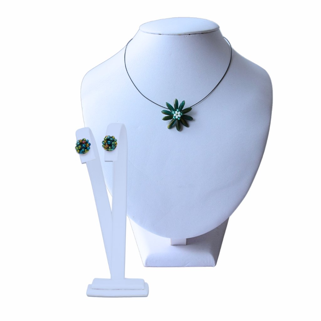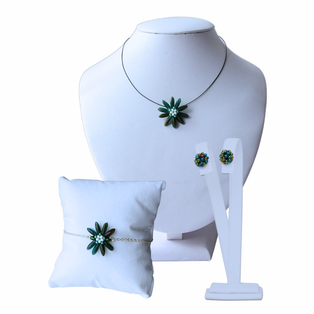 Elegantní ručně vyráběný náhrdelník a náramek s drobnou kytičkou ze skleněných korálků. Minimalistický styl náhrdelníku a náramku se snadno kombinuje s různými outfity a dodá vašemu vzhledu jemný nádech elegance.